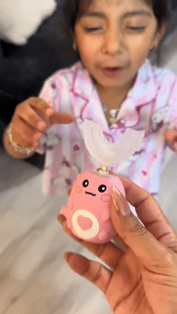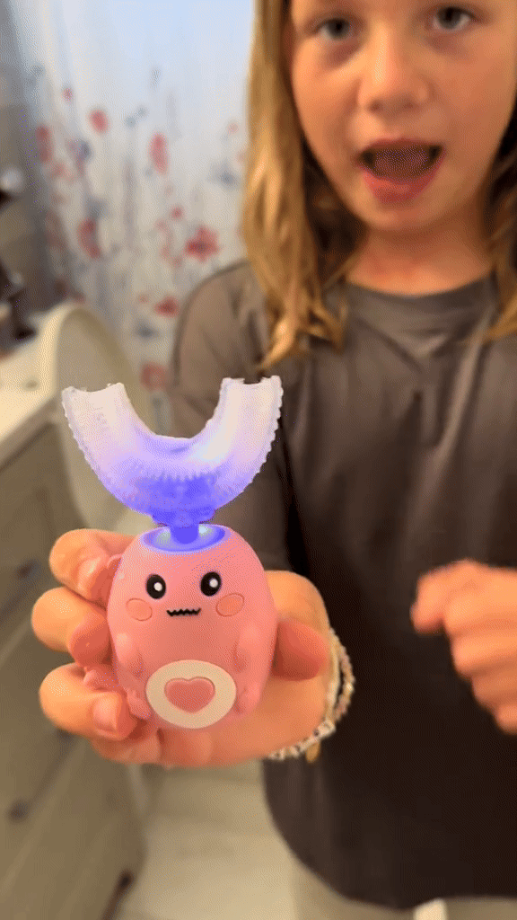 “Brush Buddy has completely changed our nighttime routine. My 6-year-old actually reminds me to use her U-shaped Brush Buddy now, and I’ve noticed her teeth look cleaner and she fights us way less about brushing.”